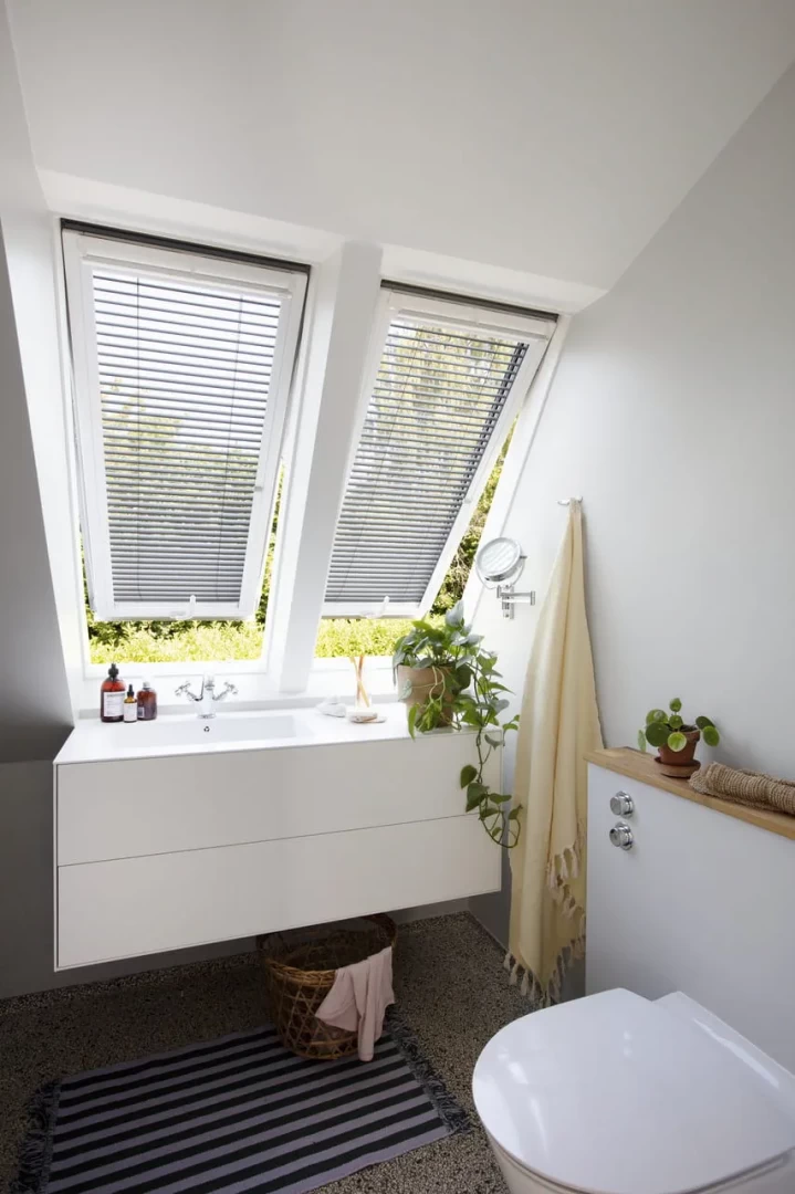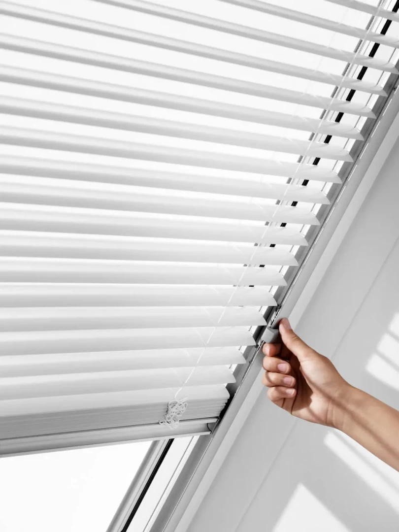 As cortinas venezianas estão disponíveis com calhas laterais de alta qualidade em alumínio ou alumínio branco. São fáceis de instalar e fazem um par perfeito com as janelas de telhado VELUX.
