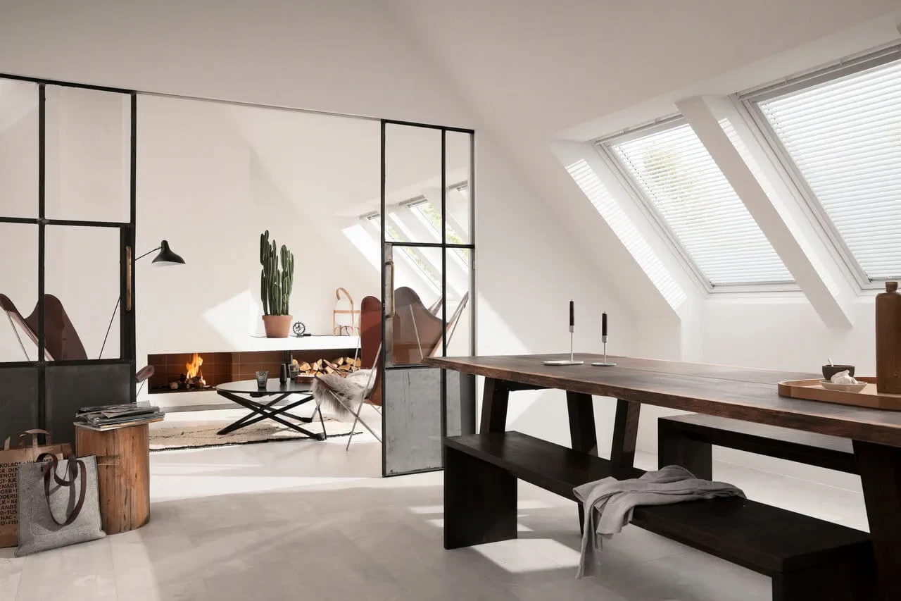 Do clássico ao moderno, a coleção de cortinas da VELUX apresenta cores elegantes e padrões subtis para se misturar perfeitamente com qualquer casa e qualquer espaço.